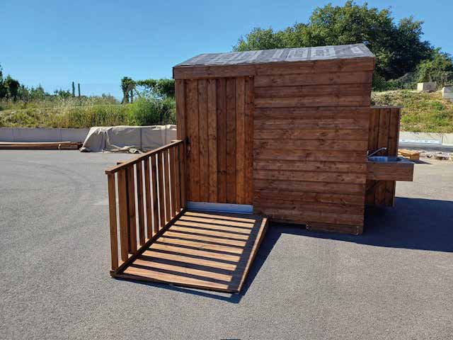 Livré entièrement assemblé, le Bloc PMR s’installe rapidement et constitue une solution idéale pour les campings, établissements recevant du public et zones d’accueil nécessitant un sanitaire accessible.